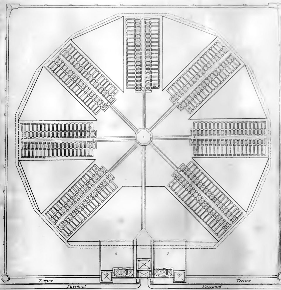 Construction began with great enthusiasm since the country had never seen such an institution, meaning not only the structure itself but also this type of prison. It was regarded as the first real penitentiary institution in the history of the world. The complexes were made up of cell wings that projected light in a half- or full circle from the center tower. Additionally, the layout was convenient since the prison could be under the constant supervision of security guards. The structure was made up of an octagonal center that connected seven single-story cells to the corridors. However, the number was eventually increased, due to the overcrowding of the institution with prisoners. Each chamber consisted of two rows of vast single cells. The architect sought to ensure that each room had heating that was switched on every winter, a hot water supply, a water tap, a toilet and separate exercise areas that were the same width as the cells.